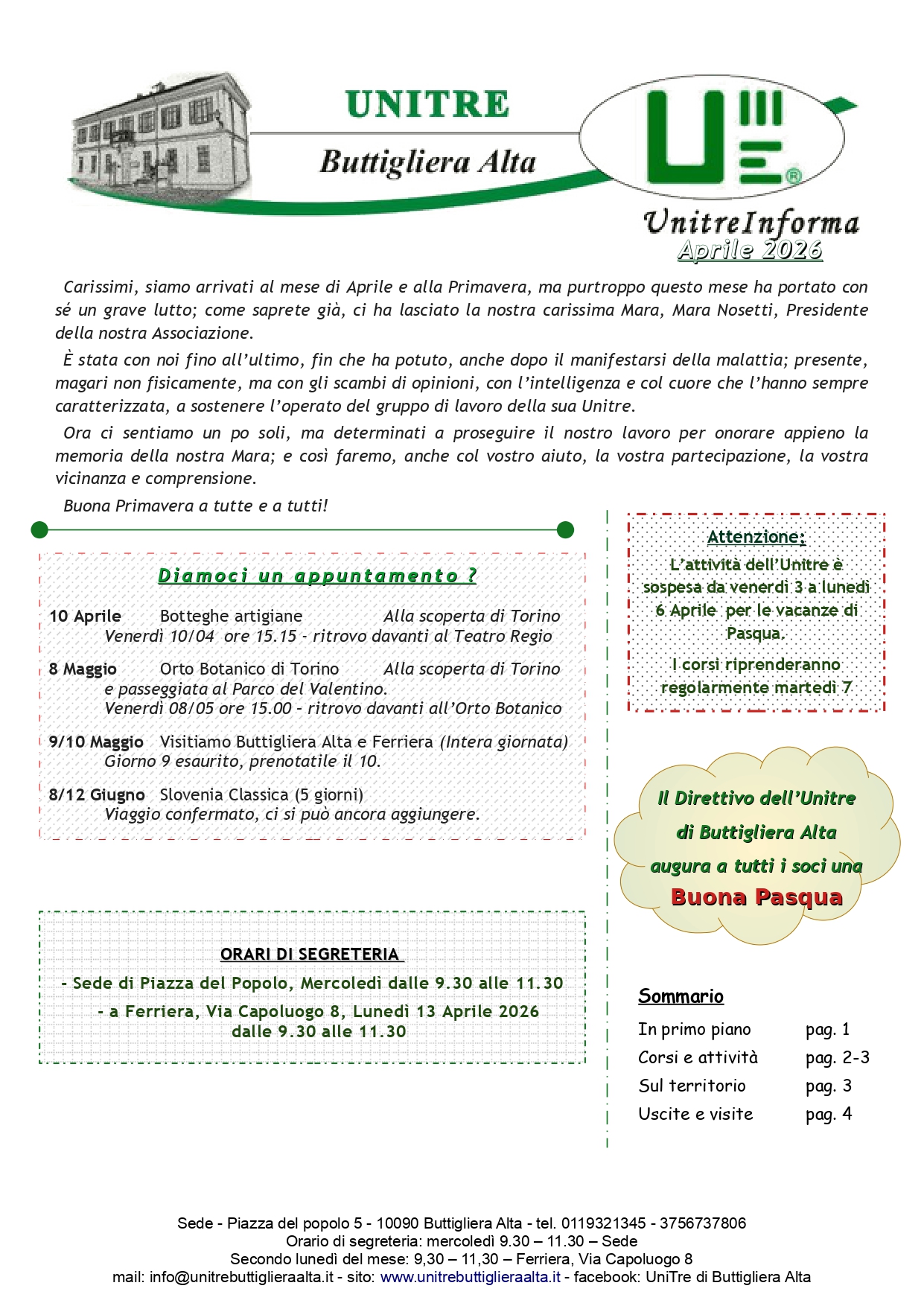 Prenotazioni entro il 28 marzo in segreteria o via mail a corsicont@unitrebuttiglieraalta.it